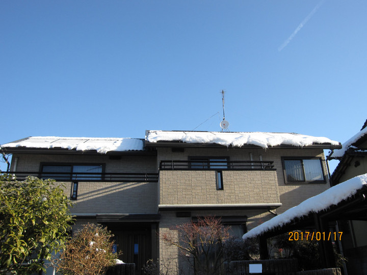 1月13日夜から降り始めた広島市の雪、1/17朝も我家の屋根には大量の雪が残っていました。