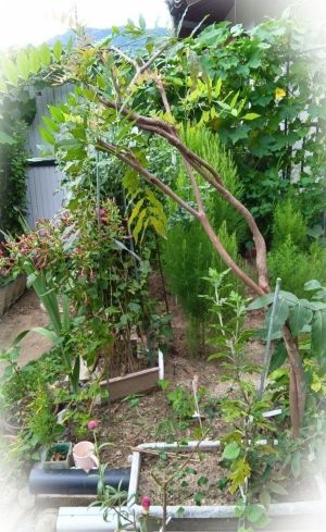 その後、徐々に成長し、根がプランター下部の隙間から飛び出して下の地面の下に伸びていました。