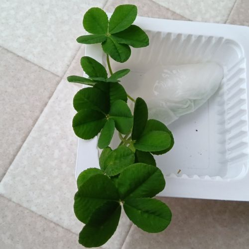 中の広場には四葉、五葉、六葉のクローバーを自由に摘み取ることのできるプランターが置かれていて、少し摘んで帰りました。