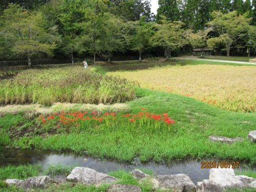 ひばの里にある田んぼのあぜ道には彼岸花の姿も・・・。