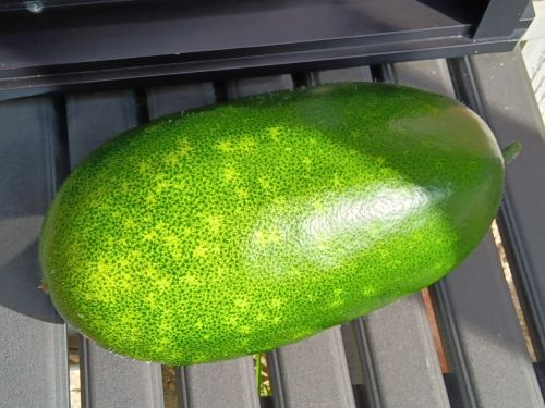 9月初旬に長さ約40cm、直径約20cm、重さ7.5kgの巨大トウガンを収穫しました。