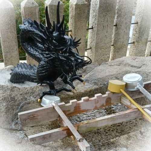 センサー付き、龍の口から水が約10秒間出るものでした。
