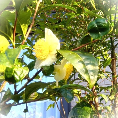 お茶の花が今年も咲きました 庭の片隅にあるお茶の木。 今年もきれいな花を咲かせてくれました。 春先に、木が少し大きくなったので枝を思い切って剪定しましたが、白い花が心を和ませてくれます。 お茶はツバキ科ツバキ属の常緑樹で、その花は椿や山茶花によく似ています。 « 前の記事 次の記事 » コメント(0)