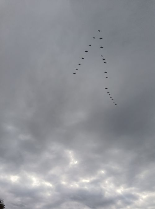 この飛行形態は風の抵抗を減らし、集団全体が効率的に飛行できるようにするための戦略だそうです。