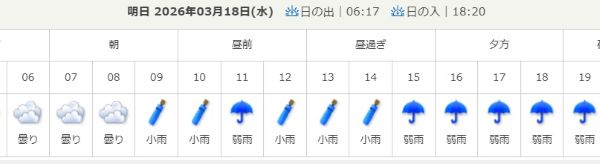 日本気象協会の天気予報などを見ていると、例えば次のように「小雨」と「弱雨」という表現が出てきます。